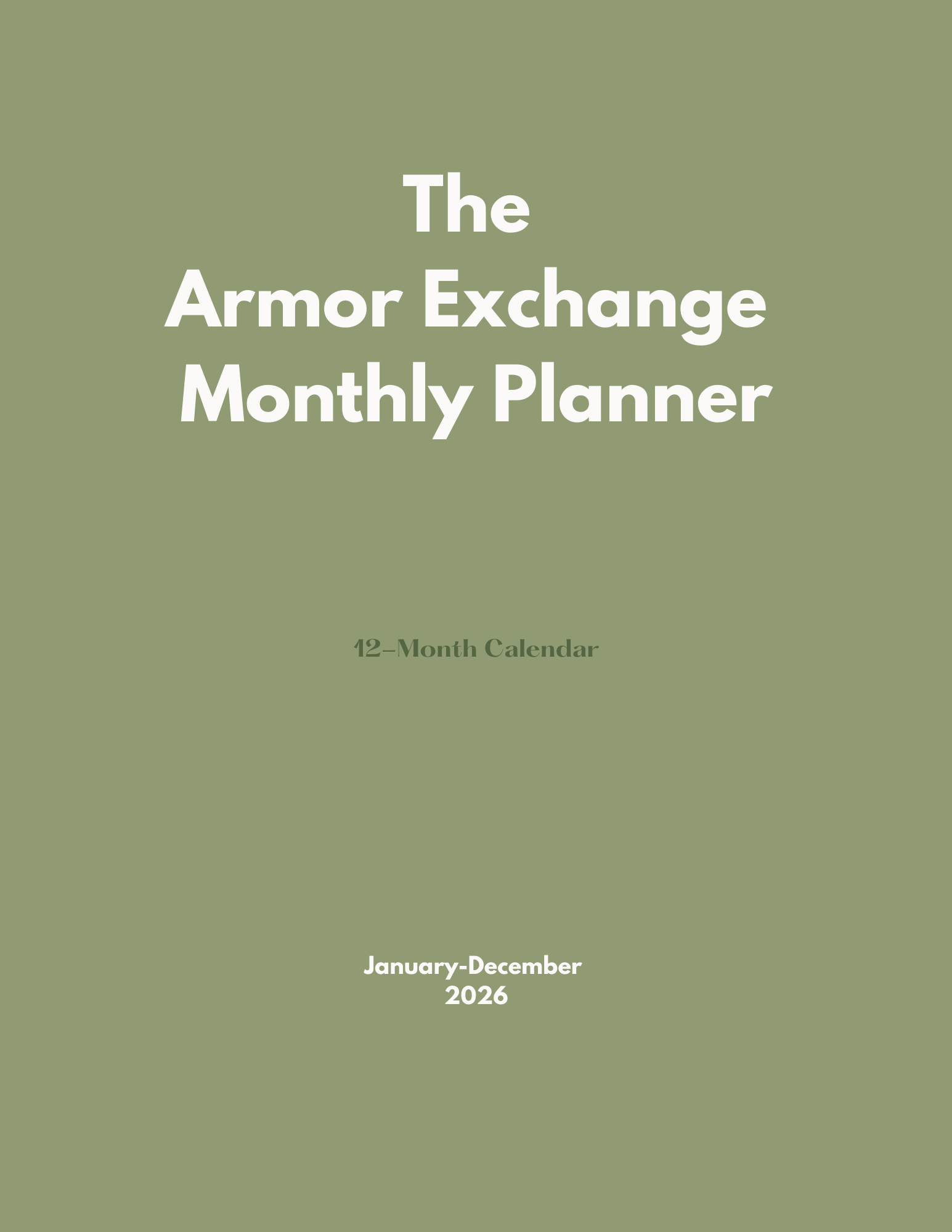 Shop Categories: Select a Category Planners Shop Planners | The Armor Exchange Monthly Planner, Small Spiral $20.99 Add to Cart Added! The Armor Exchange Monthly Planner, Small Paperback $17.99 Add to Cart Added! The Armor Exchange Monthly Planner, Large Spiral $24.99 Add to Cart Added! The Armor Exchange 2026 Monthly Planner, Large Paperback $22.99 Add to Cart Added!